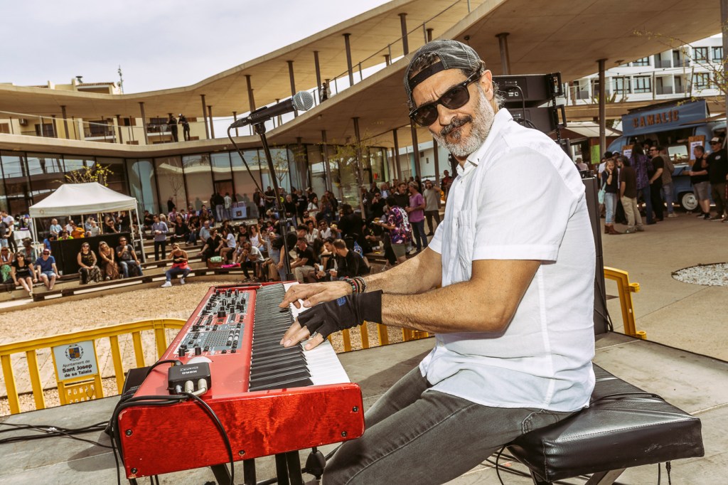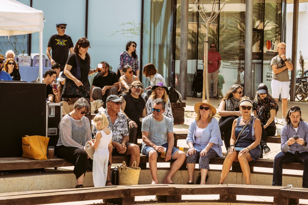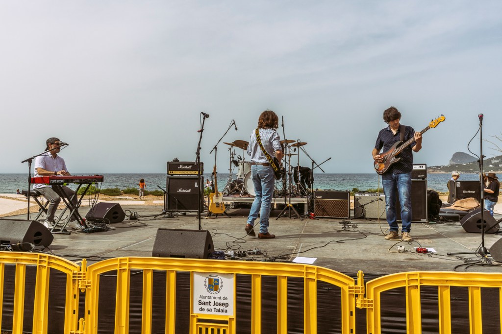 A Arnau lo acompañaron el citado guitarrista Ibai García, que acaba de lanzar un sólido álbum de blues eléctrico, Pedro Larrauri al bajo, Íñigo Elexpuru a la batería, Leire García a los coros y la percusión, Israel Santamaría a los teclados y, finalmente, Aleix Garriga a la pedal steel guitar, singular instrumento que aún no habíamos visto en Caló de s’Oli y que, como él reside en Barcelona, se trajo a la isla en ferry. Sonó increíble. Un verdadero espectáculo que incluyó los temas de su reciente EP First of All, que el público tuvo oportunidad de adquirir y llevarse a casa en el puesto de merchandising, donde también había productos de las otras bandas, como discos, camisetas, bolsas serigrafiadas…